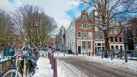 Snowy city Amsterdam in the Netherlands in winter