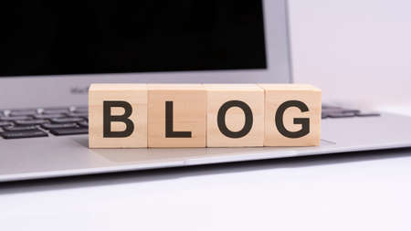 Conceptual - ‘BLOG’ written on wooden blocks. Blurred styled background.