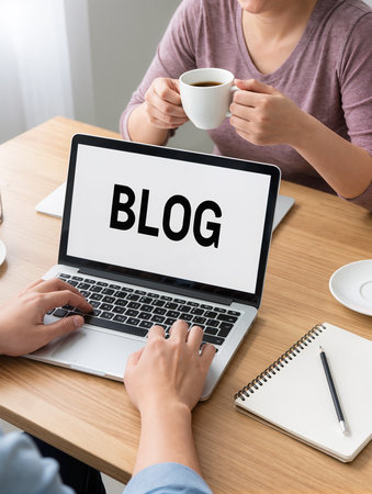 blogging concept, web blog Social Media Information network brisk. social media online content, freelance worker, working online, content creator, blogger, website, reading blog online on computer