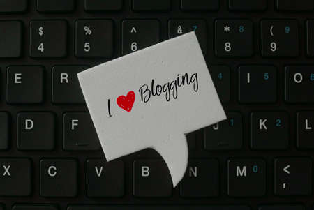 Top view of computer keyboard with speech bubble written with I love blogging.