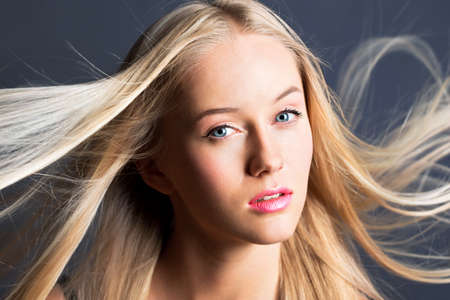 Beautiful blond girl portrait with long hair