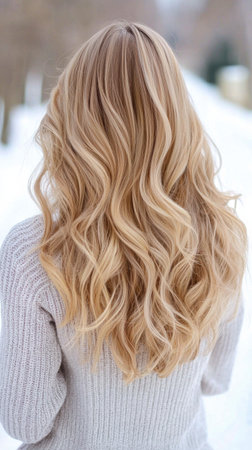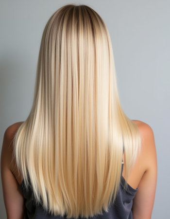 Elegant blonde hair cascading down the back of a young woman, showing healthy strands and natural shine