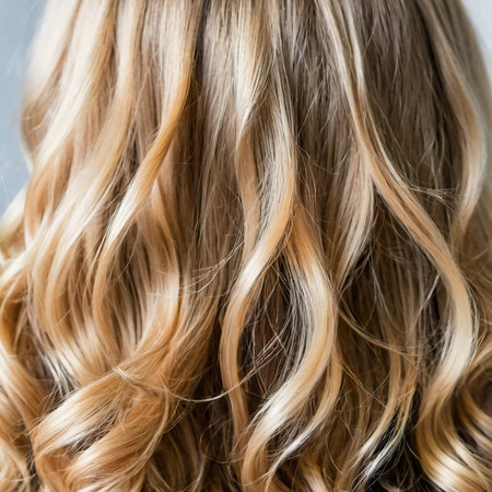 Glamorous Blonde Hair in Stunning Waves, Sunlight Reflecting on Honey and Gold Tresses for Elegance