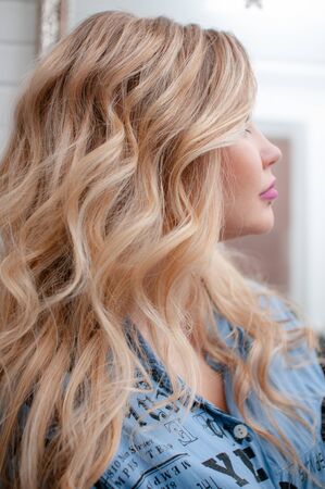 Portrait of a blonde girl with long curly hair