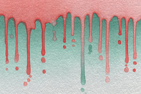 Vibrant watercolor illustration showcases red and green drips blending seamlessly, creating an abstract background with a soft texture ideal for artistic applications