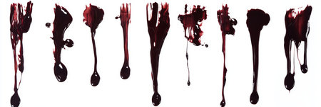 This collection features realistic blood drips and splashes on a white background, perfect for horror projects, crime scenes, medical illustrations, and various artistic endeavors