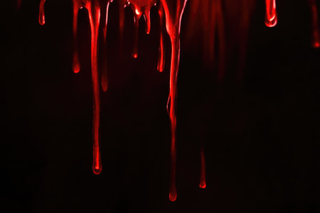 Dripping red liquid on dark background