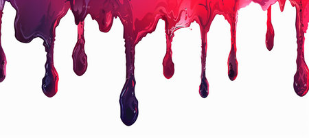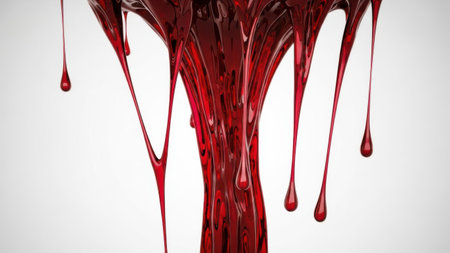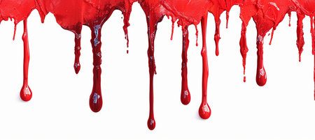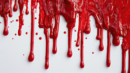 Blood-red paint drips on isolated white surface. AI generative.