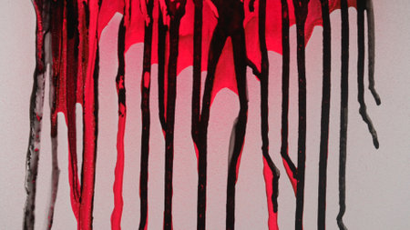 Black and Red Paint Drips on Glass Surface