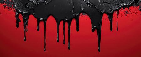 Bold Halloween Banner with Melting Black Wax Dripping Over Deep Red Background for Dramatic Promotion.