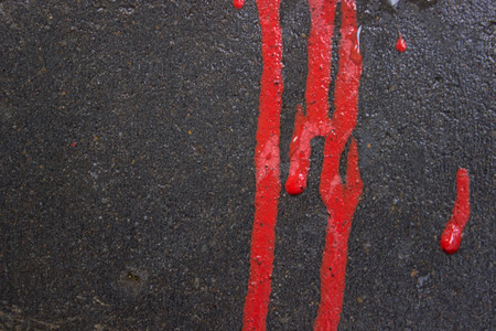 Red paint dripping down a wall, creating an abstract design.