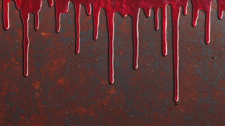 Spooky halloween scene with dripping red blood on a dark black wall for eerie atmosphere