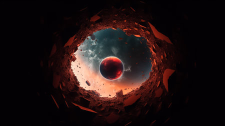 the AI Image Generator, Red Planet Surrounded by Cosmic Glow and Dark Cloud