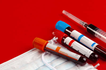 COVID-19 test and laboratory sample of blood testing for diagnosis new Corona virus infection with laboratory background. Pandemic infectious concept