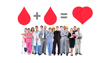 Smiling group of people with different jobs against blood donation