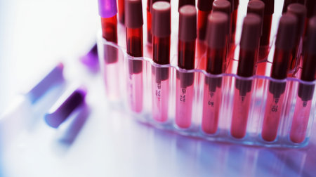 Blood samples in test tubes on a laboratory table, close up