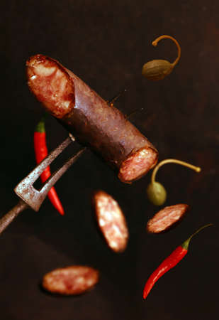smoked meat sausage with spices and pepper