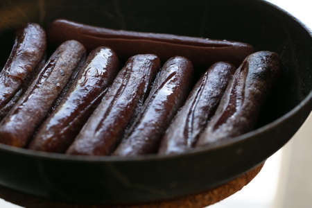 Close-up view of fried sausages. Meat fish. Cooking food. High quality photo