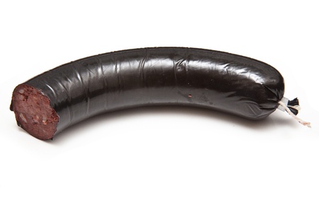 black pudding or blood sausage isolated on a white studio background.