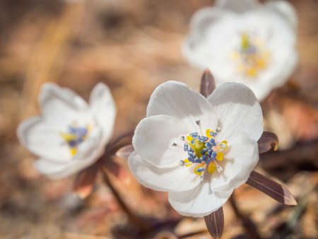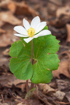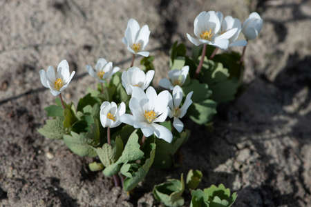 Bloodroot, Sanguinaria canadensis flowers, perennial, herbaceous flowering plant.