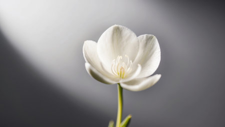 AI Generated. A white flower in focus on a black background with a blurry light source from behind it