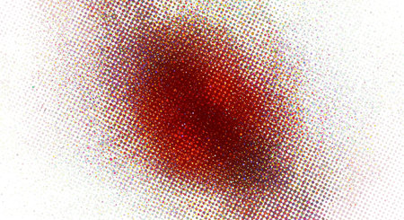 Blood-stained white surface. Disgusting view to the blood drops on whiteness. Bloody spits on white. Red spittles dripple on light background. Human wound. Bleeding research in medical laboratory.
