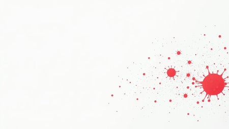 Abstract red paint splatters on a white background, showcasing vibrant colors and dynamic textures for artistic designs