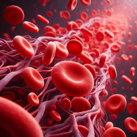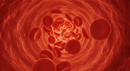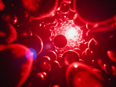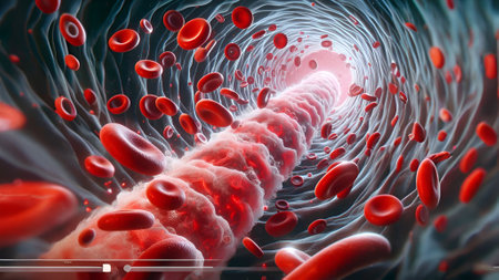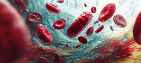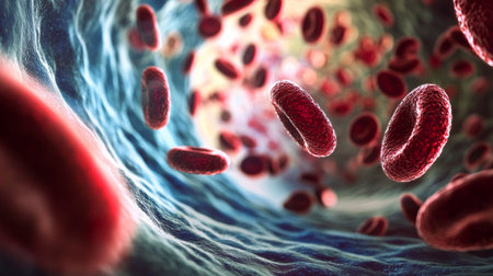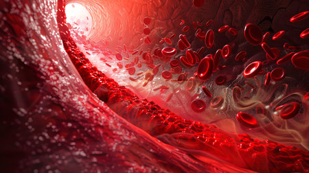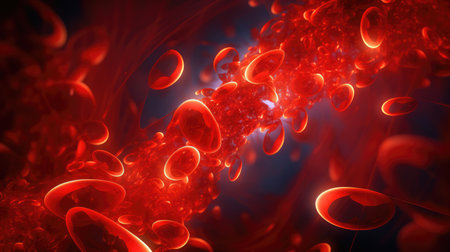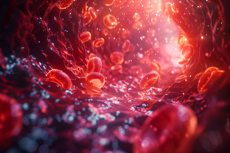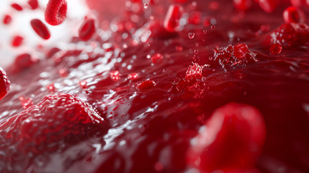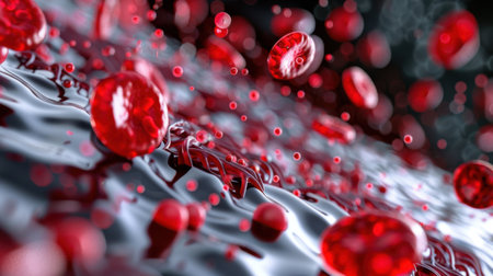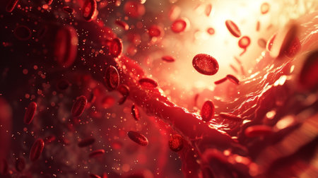 Stunning and depicting detailedion of red blood cells gracefully flowing through the bloodstream, showing their intricate structure and dynamic motion