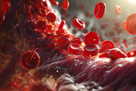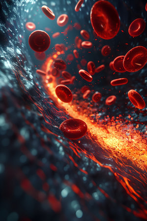 Delving into the vibrant world of red blood cells flowing through blood vessels, showcasing life.