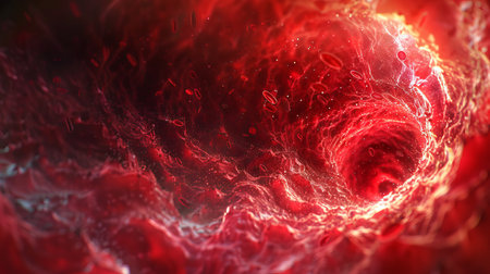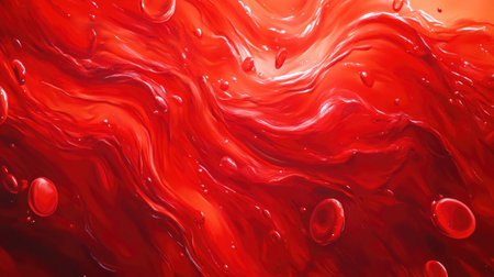 This vibrant abstract image showcases a variety of blood cells and vessels rendered in striking red and pink hues. Ideal for scientific and medical projects.