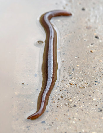 Closeup of a leech on soil with earthworms wet environment nature concept macro view