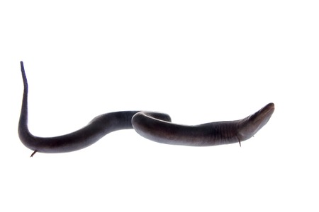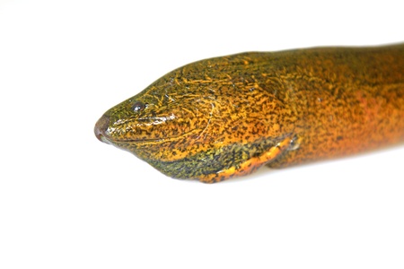 finless eel on white background, closeup of photo
