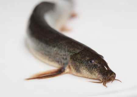 Misgurnus fossilis, European weatherfish. Object in front of white background, isolated.