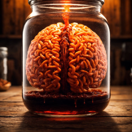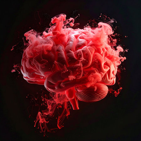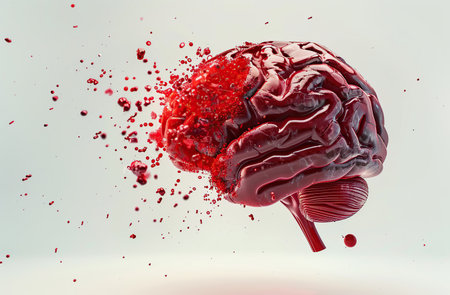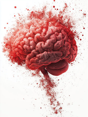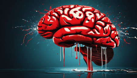 abstract brain with splashes of red stains on dark background digital illustration, created with generative ai