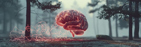 An abstract illustration showcases a human brain composed of glowing neural networks and synapses, featuring ample copy space for text.