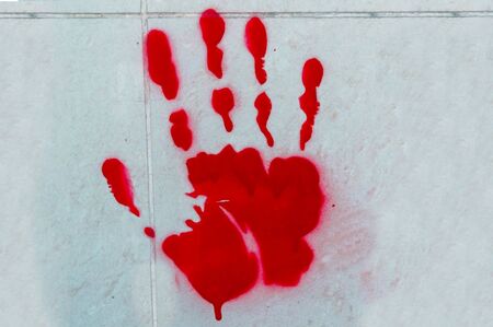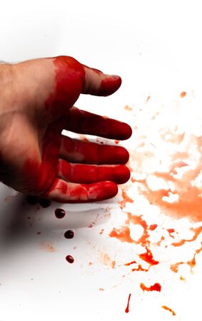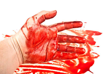 Hand in blood on a white background