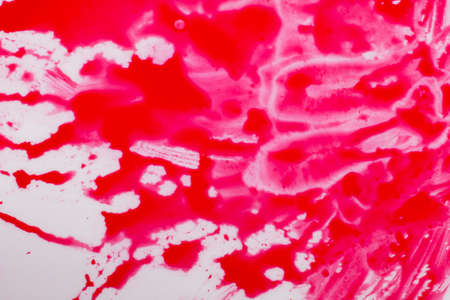 Paint spots small red on white.Colorful background hand drawn with bright inks and watercolor paints. Color splashes and splatters create uneven artistic modern design.