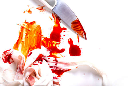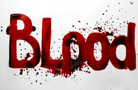 Red blood stains are smeared on a white background