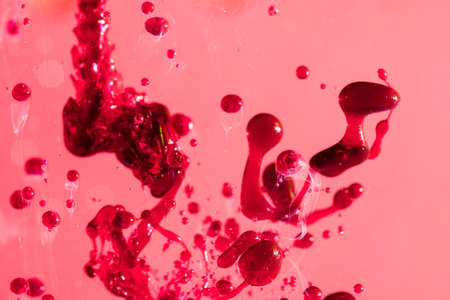 red liquid is spilled. pink background