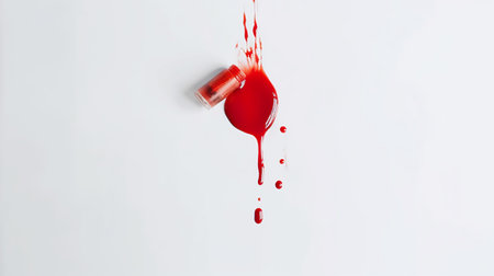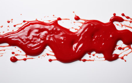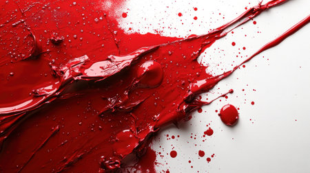 A vibrant display of bright red paint drips and splatters across a clean white surface illustrates the essence of abstract art. The dynamic movement of the paint suggests a spontaneous artistic process highlighting the interplay of color and texture
