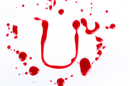 Bloody print on a white background with the letters U