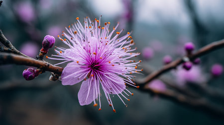 Soft Focus on Blooming Plum Flower with Branch and Buds