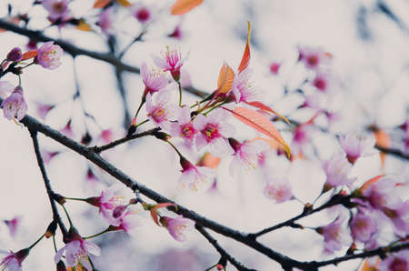 beautiful branches of pink Cherry blossoms on the tree under blue sky, Beautiful Sakura flowers during spring season in the park