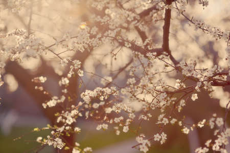 Blossom branch of apple or cherry. Shallow depth of field. Selective focus. Toned.