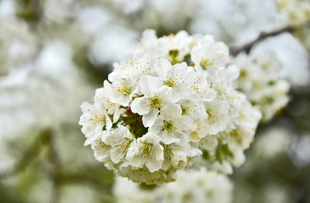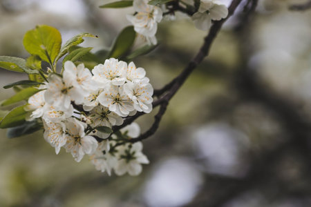 Cherry tree blossoming flowers with soft petals on natural floral background