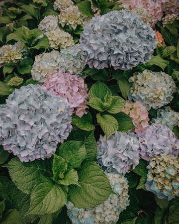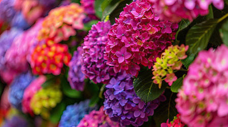 Vibrant Parade of Multicolored Hydrangeas: A Delicate Petal Wonderland – AR 3:2
