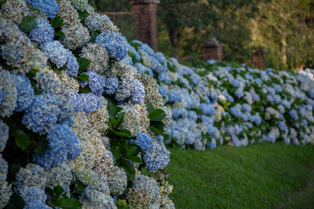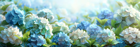 Vibrant Blooming Hydrangea Field in Summer with Blue and White Flowers