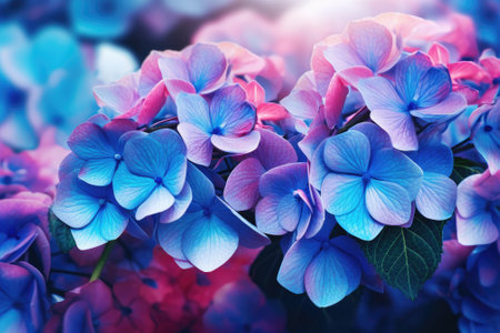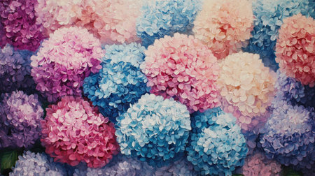 A blurred style background featuring a vibrant and vivid hydrangea with captivating colors.