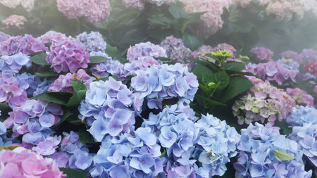 Late rainy season, early winter, Hydrangea garden in Chiang Mai, Thailand