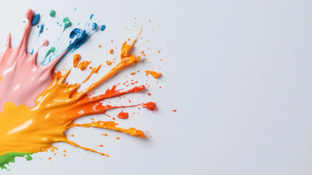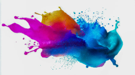 Bright and colorful splashes of paint create an abstract explosion on a white background showcasing artistic expression